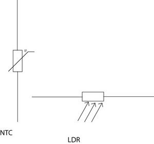 Er bestaan weerstanden afhankelijk van licht en warmte. Dat zijn de LDR en de NTC. Als de LDR licht ontvangt, daalt zijn weerstand. Als de NTC warmte opneemt, daalt zijn weerstand